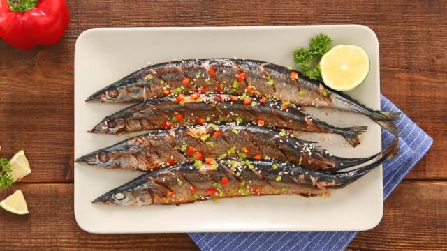 秋刀鱼700克姜丝蒜末各2大勺辣椒丝适量盐5克.