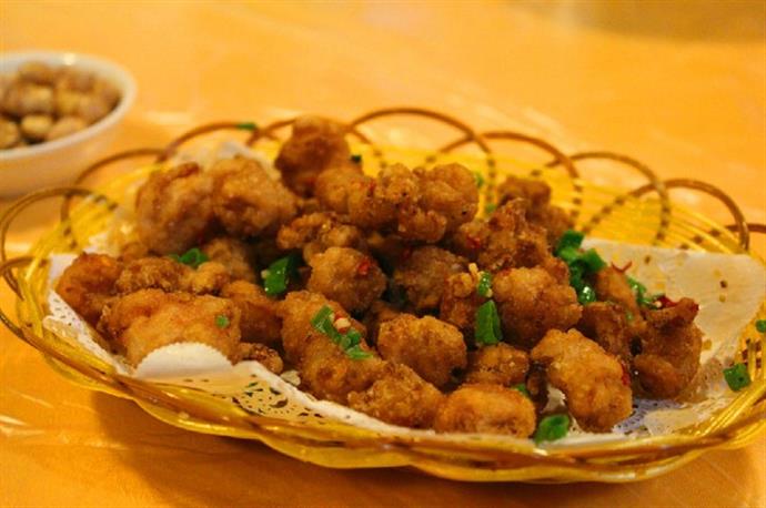 9 炸好的海蛎子放入盘中,沾着椒盐食用