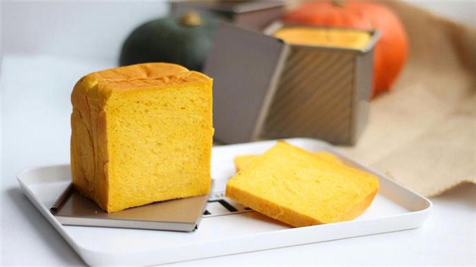 南瓜泥130克,高粉200克,低粉50克,鸡蛋48克,酵母2.5克,盐2.5克,白糖20克,黄油10克