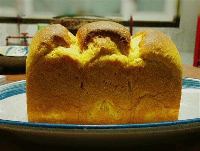 9烘烤至面包上色后,将面包桶取出脱模即可.