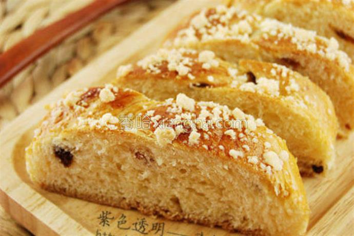 配料全麦面粉120克,高筋面粉80克,水125克,高活性干酵母1小勺,盐5克,细砂糖7克,橄榄油7克,葡萄干75克