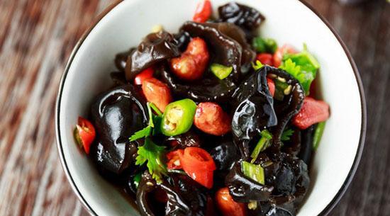 是非常受欢迎的一道爽口凉菜,它的热量很低,能够促进消化和新陈代谢,是非常棒的瘦身美食.将黑木耳在清水中泡发,然后摘洗干净,放入沸水中焯一下.