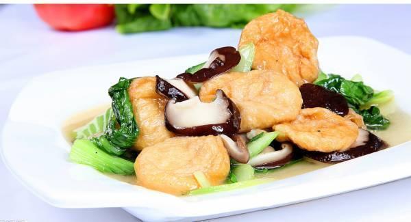 3.锅中加入少许植物油,加入香菇炒香,然后加入酱油白糖翻炒2-3分钟然后加入少许水与油面筋,盖上盖子焖烧3分钟,然后淋上浓缩牛肉汁与水淀粉即可.